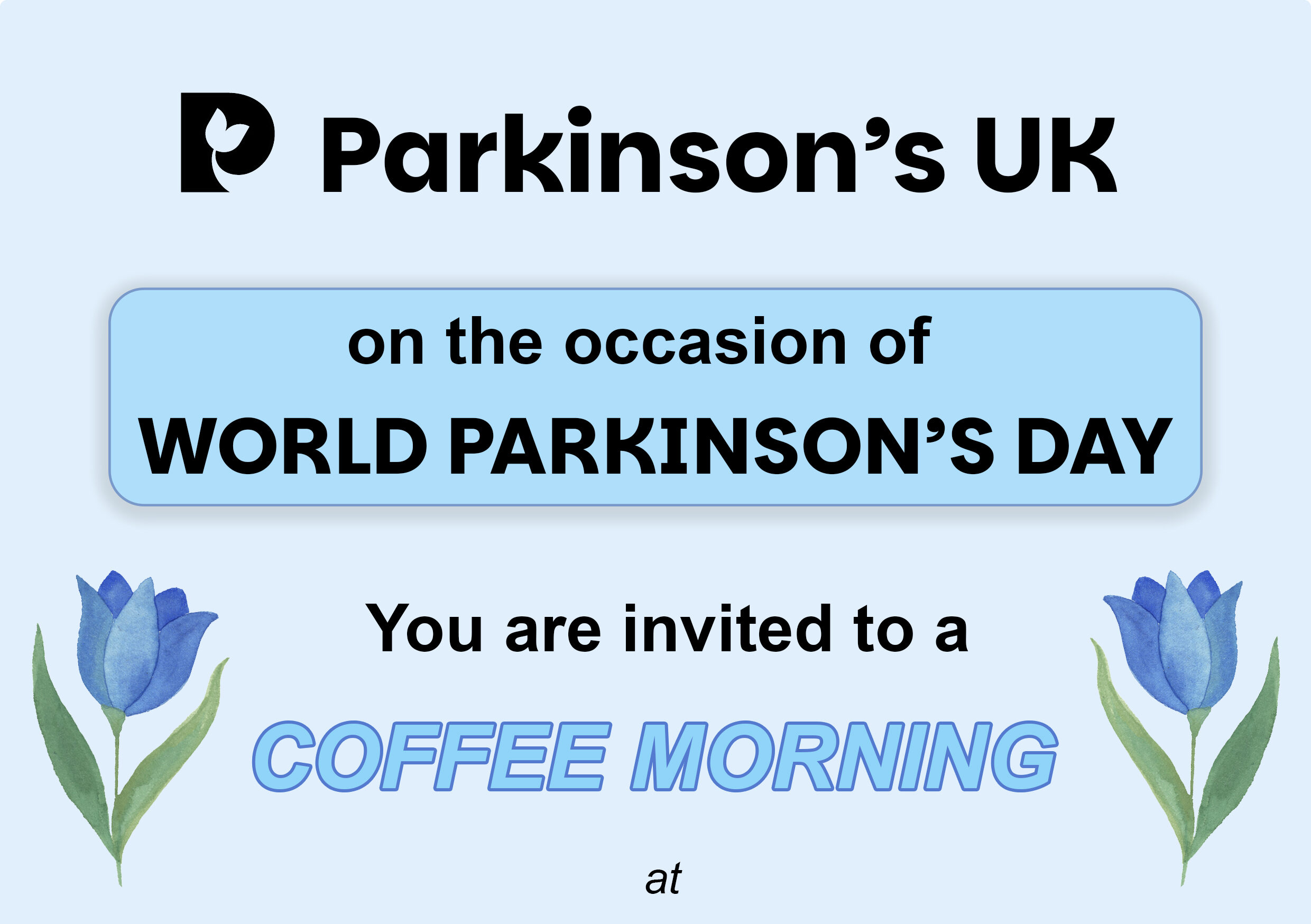 You are invited to Parkinson’s UK’s Coffee Morning in celebration of World Parkinson’s Day.